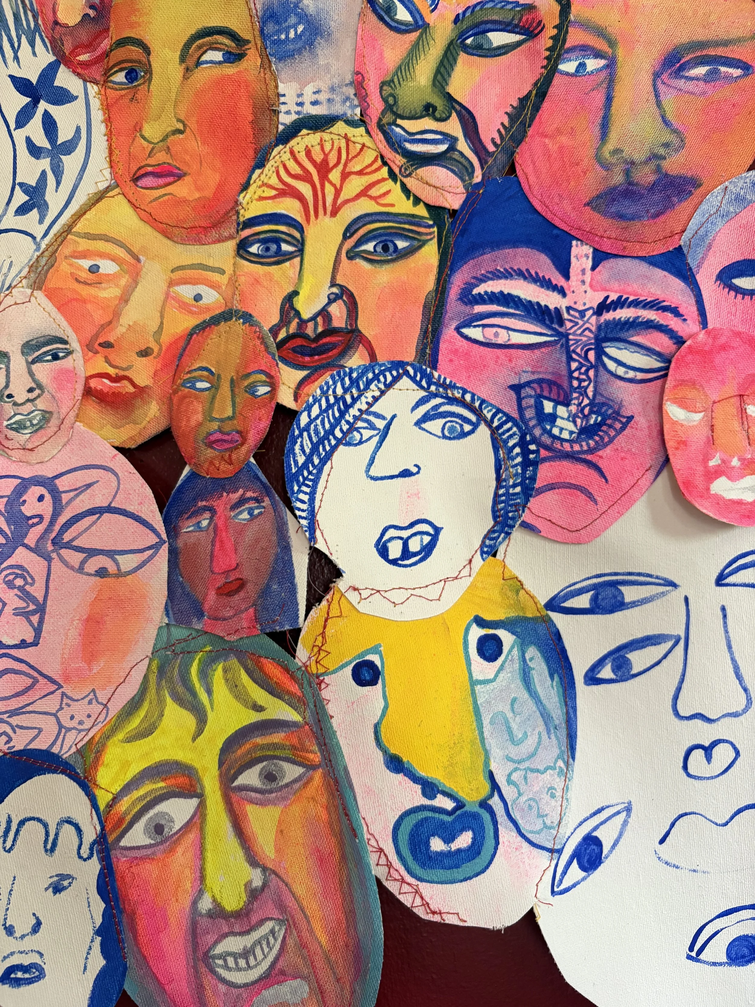 Gurbo’s work is full of force and humor. The current series of paintings experiments with making faces while exploring color, composition and the collective subconscious. “I make art as a way to investigate and regulate my parts and their emotions as well as the expressions and moods of those around me.”